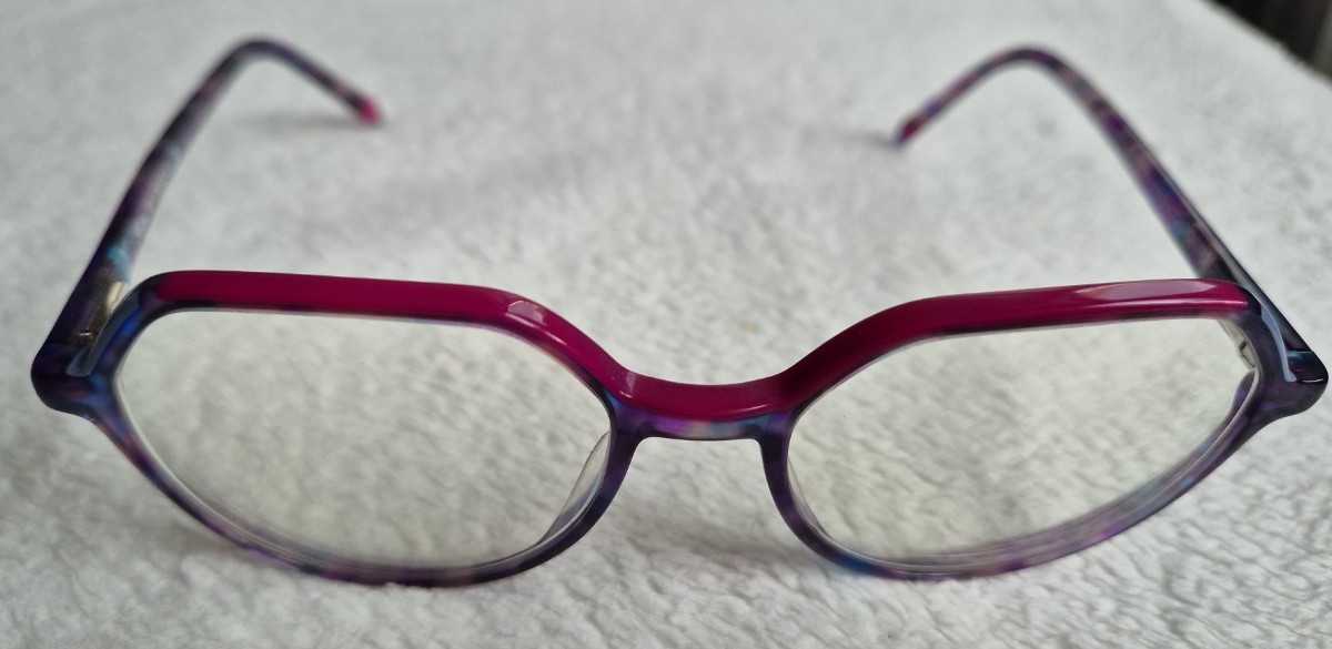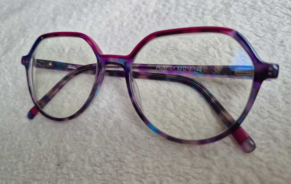 Sprzedam okazyjnie piękne damskie oprawki/okulary zakupione w profesjonalnym salonie optycznym, kolorystyka - niebiesko-fioletowo-różowe. (oczywiście same szkła do zmiany wg własnych indywidualnych potrzeb). Wymiary: szerokość oprawki - 13 cm, szerokość szkła - 5,5 cm, szerokość mostka - 16 mm, długość zausznika - 13 cm. Tel: 531-377-933.