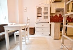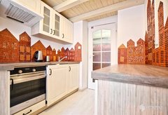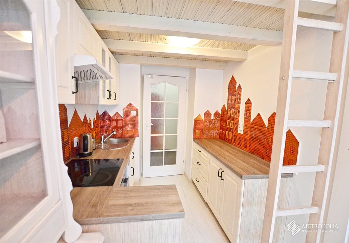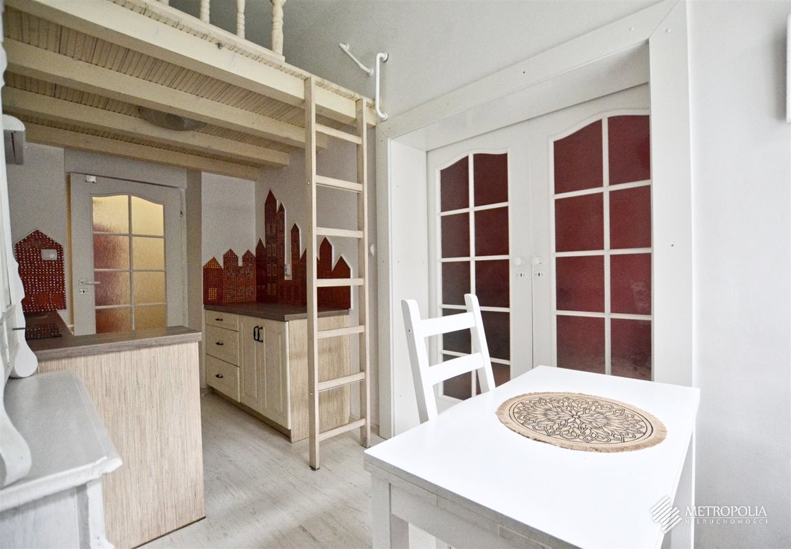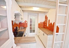 Dodatkowy atutem jest ponad standardowa wysokość mieszkania - w części kuchennej pozwoliło to na stworzenia antresoli z dodatkowym miejscem do spania, a pokój dzienny zyskuje na przestrzeni. W mieszkaniu mogą pozostać meble oraz sprzęt AGD.