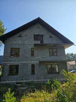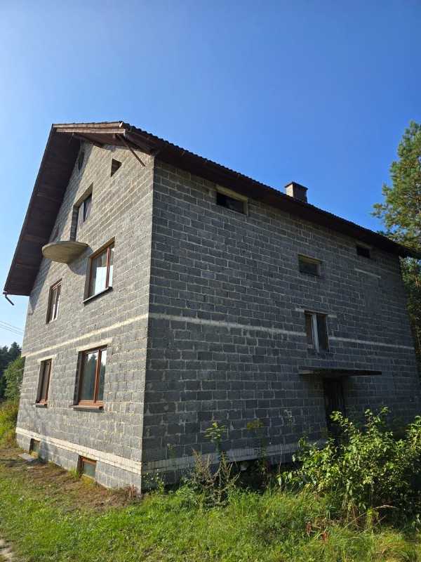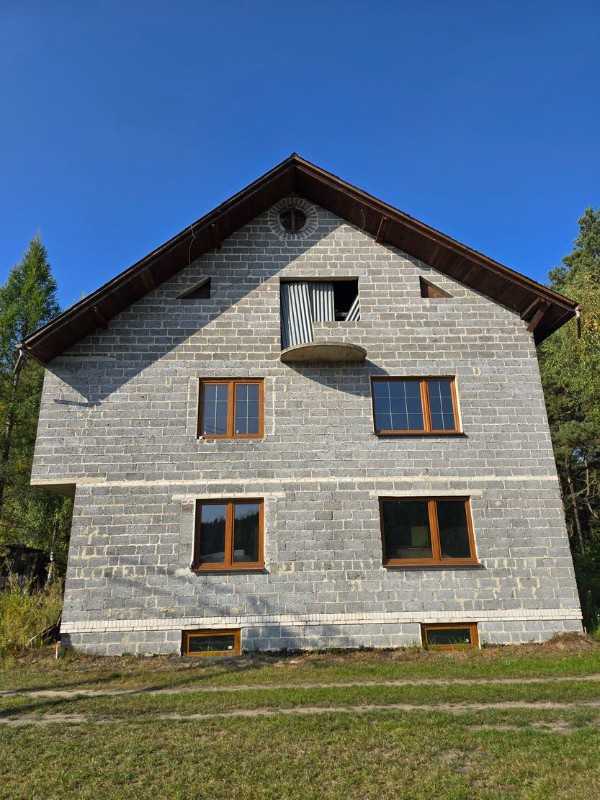 Na sprzedaż dom wolnostojący w miejscowości Cieślin w gminie Klucze, powiat olkuski. Nieruchomość znajduje się na działce w kształcie trapezu o powierzchni 2000m2 ( 20arów). Budynek jest w całości podpiwniczony, posiada dwie kondygnacje mieszkalne oraz strych. Parter składa się z następujących pomieszczeń: wiatrołap, przedpokój, salon, kuchnia, pokój, łazienka i wc. Na piętrze jest 5pokoi oraz łazienka. Przybliżona powierzchnia użytkowa parteru to 87,84m2. Przybliżona powierzchnia użytkowa 1 piętra to 91,75m2. Razem powierzchnia użytkowa parteru i 1 pietra to 179,59m2. Budynek w stanie surowym zamkniętym. Na parterze są rozprowadzone instalacje elektryczne, tynki na ścianach oraz zamontowane drzwi wewnętrze. Na parterze oraz na piętrze w 2020r. wstawiono okna plastikowe. Nieruchomość wybudowana w latach 90tych XX wieku wykonana w technologii tradycyjnej z pustaka. Dom nieocieplony i nieotynkowany. Dach pokryty eternitem. Dostępne media: prąd, woda. Typ kanalizacji: szambo. Wzdłuż działki przy granicy z drogą przebiega sieć gazowa – obecnie nie podpięta do budynku. Dojazd do nieruchomości drogą asfaltową. Dom znajduje się przy lesie w Cieślinie przy ulicy Olkuskiej w otoczeniu domów jednorodzinnych. Cena do negocjacji. Zapraszamy do oglądania. Pomagamy bezpłatnie w uzyskaniu kredytu hipotecznego na zakup nieruchomości. Współpracujemy z doradcą kredytowym, który bezpłatnie wybierze dla Państwa najlepszą ofertę kredytową. Zainteresowane osoby prosimy o kontakt. Niniejsza oferta nie stanowi oferty w rozumieniu przepisów Kodeksu Cywilnego, a zawarte w niej dane mają jedynie charakter informacyjny. KONTAKT: Biuro Nieruchomości Azyl Tel. 533-518-914