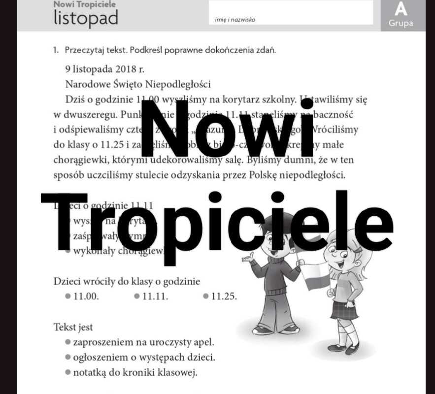 Mamo! , mam sprawdzian, a ja nic nie umiem !!! Mam coś, co uratuje Wam niejeden wieczór przy biurku i zagwarantuje bardzo dobre oceny. Twoje dziecko korzysta z Nowi Tropiciele ? - Karty miesięczne z języka polskiego i matematyki - grupa A i B - Od września aż po czerwiec ( bo nauka to maraton, nie sprint ) - Dla klas 1 - 3 szkoły podstawowej Pisz śmiało na 510209971 , zanim zacznie poprawiać oceny...