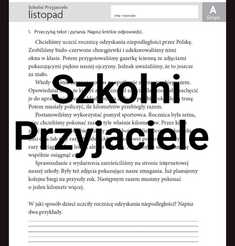Mamo! , mam sprawdzian, a ja nic nie umiem !!! Mam coś, co uratuje Wam niejeden wieczór przy biurku i zagwarantuje bardzo dobre oceny. Twoje dziecko korzysta z Szkolni Przyjaciele ? - Karty miesięczne z języka polskiego i matematyki - grupa A i B - Od września aż po czerwiec ( bo nauka to maraton, nie sprint ) - Dla klas 1 - 3 szkoły podstawowej Pisz śmiało na 510209971 , zanim zacznie poprawiać oceny...