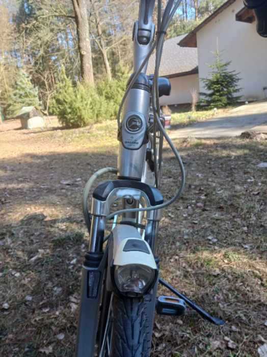 Sprzedam rower elektryczny Gazelle w stanie perfekcyjnym z przebiegiem 3300km. Wyposażenie komplet kluczyków nowe dętki i opony wzmacniane schwalbe z podwójną wkładką antyprzebiciową grube szprychy nowa bateria 1000 rowerek nie jest nigdzie porysowany godny polecenia za te pieniądze nawet dla osób o powarznej wadze polecam