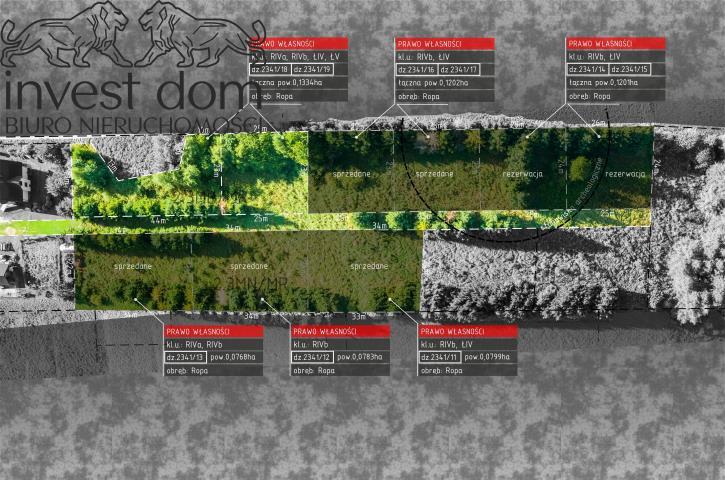 Przedmiotem sprzedaży jest sześć (6) urokliwe położonych działek budowlanych oznaczonych numerami ewidencyjnymi: 2341/11 - 2341/19 powierzchni 0,0768ha - 0,1202ha oraz działka numer: 2341/20 powierzchni 0,1229ha stanowiącą drogę dojazdową w której sprzedawany będzie udział. Zgodnie z (MPZP) Miejscowym Planem Zagospodarowania Przestrzennego działki obejmują tereny oznaczone symbolem 2.3 MN/MR (tereny zabudowy mieszkaniowej o niskiej intensywności zabudowy), cześć działek znajduje się w terenach stanowisk archeologicznych. Grunty stanowią klaso-użytki: (RIVa, RIVb, ŁV, ŁIV) usytuowane na wzgórzu z widokiem na Beskid Niski w miejscowości Ropa, woj. małopolskie.Dostęp do sieci infrastruktury technicznej:- prąd (w odległości ok 45m),- gaz (w odległości ok. 45m),- wodociąg (w odległości ok. 50m),- kanalizacja (w odległości ok. 100m)Grunty o płaskiej powierzchni nachylone w kierunku wschodnio-północnym o średniej rzędnej wysokości 370~390 m.n.p.m. Dojazd do nieruchomości odbywa się gminną drogą nawierzchni asfaltowej, następnie ok 80m wewnętrzną drogą z udziałem współwłasności wymagająca utwardzenia. Największym atutem tej nieruchomości jest jej lokalizacja, urokliwe miejsce położone w w Beskidzie Niskim z unikatowymi widokami na pasma górskie i okolice. Nieruchomość otoczona jest lasami oraz polami, takie położenie daje możliwość spędzania wolnego czasu na świeżym powietrzu w różnoraki sposób - przez aktywność fizyczną, które dają możliwość pobliskie szlaki turystyczne lub po prostu delektując się widokami nie przekraczając granic swojej działki. Miejscem tym, zachwyci się każda osoba doceniająca piękno przyrody, miłośnicy zbierania grzybów pokochają okoliczne lasy oraz jazdę konną z jednej największej w Europie stadniny koni Huculskich w Regietowie. W niedalekiej odległości znajduję się zalew Klimkówka wspaniałe miejsce dla plażowiczów, osób uprawiające sporty wodne oraz prawdzie wędkarskie eldorado. Zimą dostępne w promieniu kilki kilometrów wyciągi narciarskie: Małastów, Smerekowiec oraz Magura Małastowska.Cena nieruchomości: Dz. ewid.: 2341/11, pow. 0,0799ha - SPRZEDANADz. ewid.: 2341/12, pow. 0,0783ha - SPRZEDANADz. ewid.: 2341/13, pow. 0,0768ha - SPRZEDANADz. ewid.: 2341/14, 2341/15, pow. 0,1201ha - SPRZEDANEDz. ewid.: 2341/16, 2341/17, pow. 0,1202ha - SPRZEDANEDz. ewid.: 2341/18, 2341/19, pow. 0,1334ha - 70 000 PLNDz. ewid.: 2341/20, pow. 0,1229ha - udział w drodze wewnętrznej w cenie każdej działki.Lokalizacja pozwala na szybki dostęp do:350m - stacja benzynowa "Baroma",750m - przystanek autobusowy,1200m - sklep "Pepco", "Stokrotka", "Lewiatan",1300m - Urząd Gminy Ropa, Apteka, Poczta Polska1500m - Szkoła Podstawowa Nr. 1 w Ropie im. KaOSG,1500m - Restauracja Gościniec Dworski 1700m - Kościół św. Michała Archanioła6500m - Zalew Klimkówka oraz liczne szlaki pieszo-rowerowe,13000m - Centrum miasta Gorlice.Proponujemy Państwu również bezpłatną usługę doradztwa kredytowego:- zweryfikujemy zdolność kredytową,- pomożemy wybrać najkorzystniejszą ofertę,- załatwimy wszelkie formalności.Zapraszamy do bezpłatnej prezentacji nieruchomości w terenie, termin oraz godzina do ustalenia.Agent prowadzący: Jadwiga +48 517 105 599Treść niniejszego ogłoszenia nie stanowi oferty handlowej w rozumieniu Kodeksu Cywilnego. Wszelkie prawa autorskie zastrzeżone. Kopiowanie zdjęć zabronione.Rzuty są bez jakiejkolwiek gwarancji dotyczącej jakości i dokładności wymiarów.Oferta wysłana z programu IMO dla biur nieruchomości