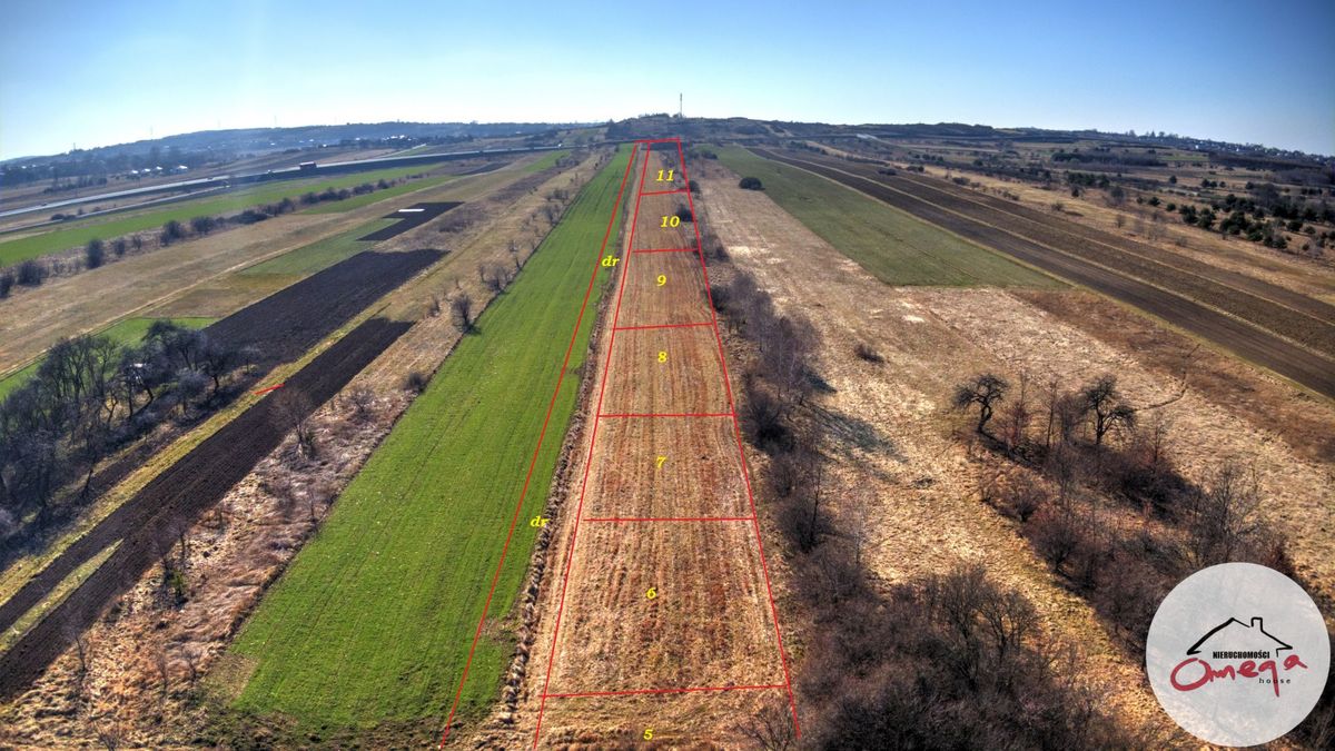 Działki sprzedawane z udziałem w drodze wewnętrznej o szerokości 6m. Szerokość od drogi ok 50 m, długość w głąb działki ok 16,5 m.
