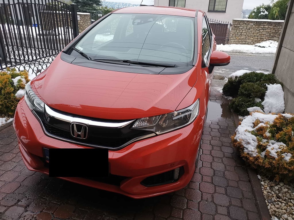 Sprzedam Hondę Jazz 2018 rok. Pierwsza rejestracja 2019 rok, pierwszy właściciel, garażowany, niski przebieg 37000, 1.3 i-VTEC, CVT, kolor pomarańczowy, dwa komplety kół. Cena 60000 zł. Olkusz. Tel.(604)254097.