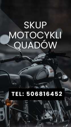 SKUP MOTOCYKLI, MOTOROWERÓW, SKUTERÓW, QUADÓW, ATV, SKUTERÓW WODNYCH, ŚNIEŻNYCH, BUGGY, KARTINGÓW! Skupujemy pojazdy wszystkich marek i modele- także Chińskie! W pełni sprawne, uszkodzone, do poprawek lub powypadkowe! Dojeżdżamy na miejsce, płacimy gotówką od ręki! Gwarantujemy szybki odbiór, minimum formalności. Odbieramy motocykle własnym transportem. Dziś dzwonisz- dziś sprzedajesz! Zachęcamy do kontaktu 24h/7! Pisz, dzwoń- dogadamy się! Działamy na terenie całej Polski! TEL: 506 816 452 Do wyszukiwarki: skup kupię kupno odkup sprzedać sprzedaj odsprzedać komis motocykl motocykle motocykli motocyklowy motocyklowe skuter buggy bugy karting kartingi kartingów skutery skuterów quad quady quadów atv utv ssv skuter wodny wodne wodnych śnieżny śnieżnych śnieżne powypadkowe powypadkowy uszkodzony wypadek motocyklowy wypadki powypadku motorowery motorowery motorowerów motor motory motorów stare starych zabytkowy zabytkowe zabytki zabytków złom złomowanie złomujemy złom motocyklowy złom motorów motory motory cross crossy crossów enduro choper chopper choperów chopery choppery chopperów ścigacz ścigaczy ścigacze turystyczne turystyków turystyki turystycznych po wypadku powypadkowych turystyczny naked nakedów nakedy małopolska małopolskie śląskie śląsk opolskie podkarpackie podkarpacie gotówka gotówkę sprzedać sprzedaj sprzedaż dolnośląskie łódzkie świętokrzyskie wielkopolskie pomorskie kujawsko-pomorskie zachodnio-pomorskie pomorze pomorzu podlaskie podlasie warmińsko-mazurskie mazowieckie mazowsze cała całej polski polska polsce polski całe